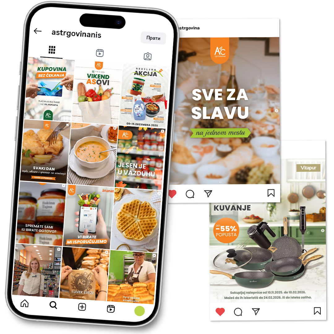 Saradnja sa AS trgovinom obuhvatila je razvoj i realizaciju brending i komunikacijskog koncepta za lanac marketa, sa fokusom na jačanje digitalnog prisustva i konzistentnu prezentaciju širokog asortimana.